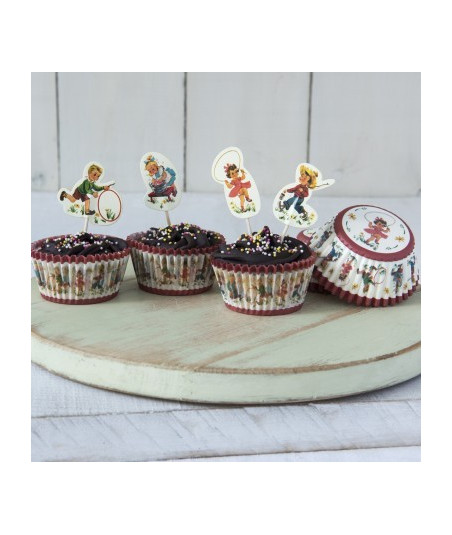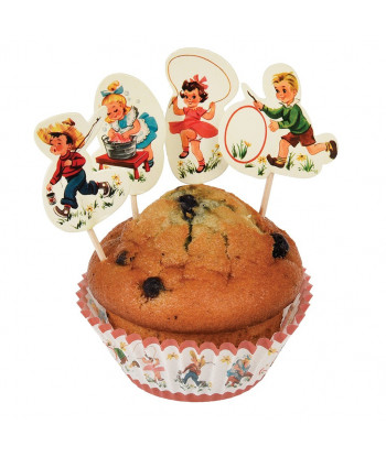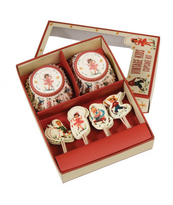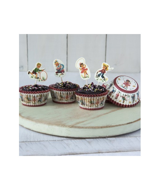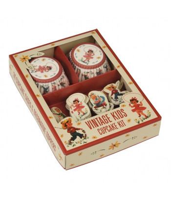 Pour l'anniversaire de votre enfant, si vous craquez pour la vintage, ce kit à cupcakes composé de 24 caissettes et 24 piques décoratifs sera parfait pour décorer le gouter d'anniversaire de votre enfant.Ils magnifieront tous vos gâteaux et petites créations home made. Chacun d'eux met en scène de jolies illustrations d'enfants des années 50/60, de quoi vous replonger dans un style résolument fifties et amuser les plus petits.