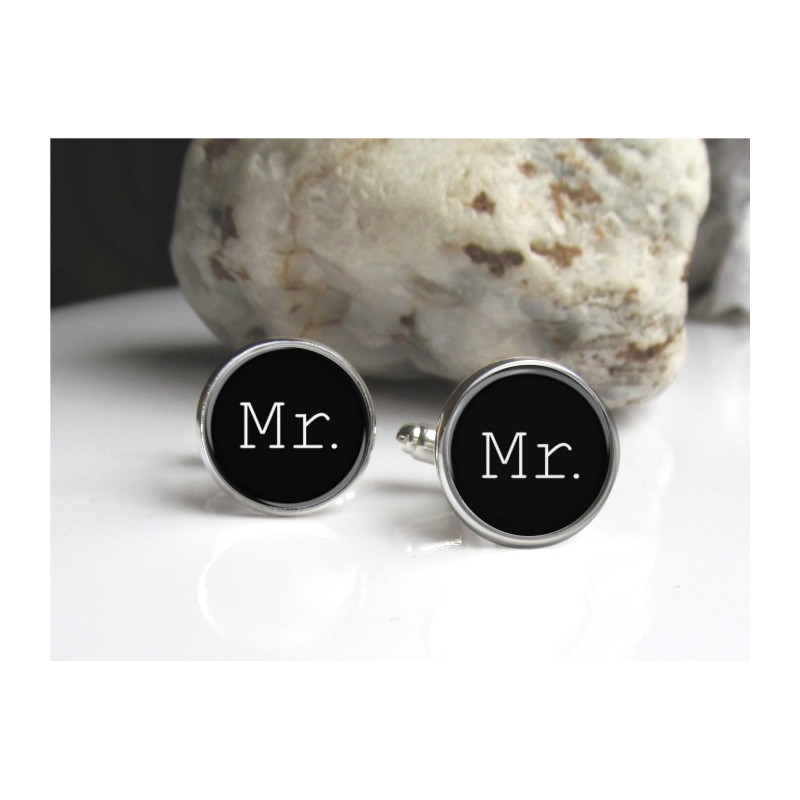 Craquant ce set de boutons de manchette "Mr" de couleur noire à porter le Jour J comme un clin d'oeil le jour du mariage !