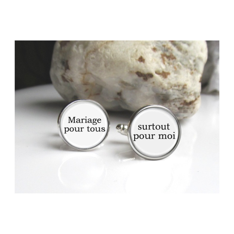 Découvrez nos boutons de manchettes blancs pour accessoiriser votre tenue de mariage. Ces boutons de manchettes seront un joli clin d'œil pour le grand jour. Craquez pour ces bijoux de mariage "mariage pour tous" et " surtout pour moi", un message tendre et humoristique, la touche finale à votre costume de mariage ;)