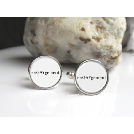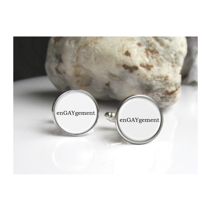 Vive le mariage gay ! Messieurs, affichez votre amour et votre engagement pour l'être aimé avec ce duo de boutons de manchettes qui parle pour vous: "enGAYgement" !