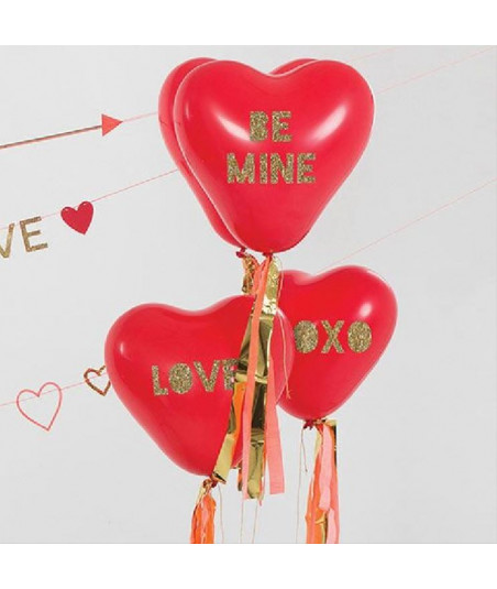 Le kit comprend des stickers pailletés, des rubans métallisés et des attaches pour obtenir un merveilleux bouquet de ballons. Ces ballons cœur mesure environ 45 cm une fois gonflé.