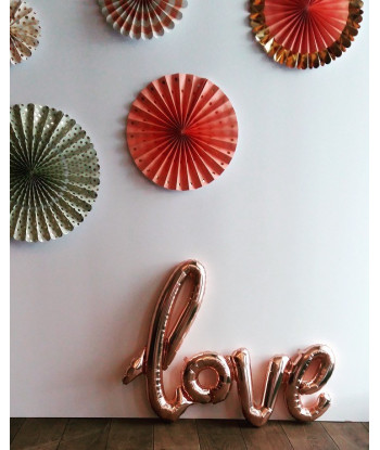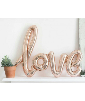 Un ballon original "Love" rose gold, comme écrit à la main, pour des fiançailles hors du temps, pour la décoration d'un mariage, d'une baby shower ou comme accessoire pour un EVJF ! Love ! L'amour est là, dites-le avec ce magnifique ballon d'une pièce aux tonalités or rose et aux effets métallisés.