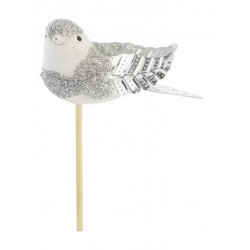 4 piques en bois surmontées d'oiseaux blancs et argentés qui apporteront du glitter et de l'éclat à votre décoration de table.