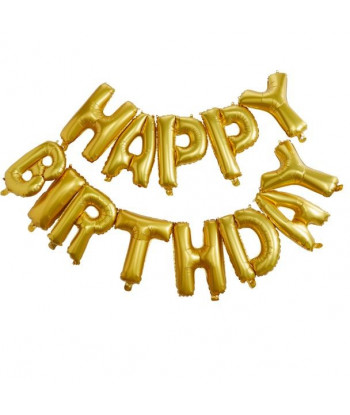 Joyeux anniversaire ! Une guirlande originale pour une décoration d'anniversaire, car cette guirlande est composée de ballons en forme de lettres avec les mots Happy Birthday. Une guirlande ballon pour petits et grands qui mettra les invités immédiatement dans l'ambiance d'un anniversaire  ! Cette guirlande Happy Birthday avec des ballons mylar doré aux effets métallisés décorera votre salle de façon très originale et surprendra vos invités !